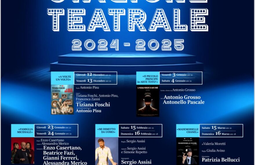 Prosegue la nuova stagione di prosa autunnale al Teatro Vittoria, organizzata dall’amministrazione Mastrangeli mediante gli assessorati alla cultura (Simona Geralico) e centro storico (Rossella Testa) in collaborazione con Good Mood. Cinque i prossimi appuntamenti in programma, fino ad aprile 2025.Giovedì 23 e venerdì 24 gennaio sarà di scena alle 21 “Famiglia micidiale”,