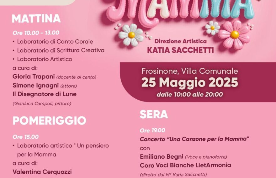 Tutto pronto per “Creativamente mamma”, evento patrocinato dal Comune di Frosinone (assessorato alla cultura di Simona Geralico) che si terrà domenica 25 maggio alla Villa Comunale, con la direzione artistica di Katia Sacchetti.L’iniziativa rientra nell’ambito delle attività organizzate dal Comitato Tecnico Artistico Culturale, recentemente costituito, per supportare lo