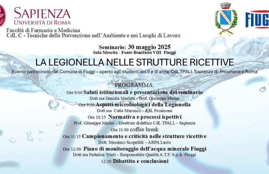Stretta collaborazione tra l’università Sapienza di Roma e il Comune di Fiuggi.L’ amministrazione comunale, il sindaco Alioska Baccarini e il consigliere delegato Daniela Merletti, presentano il seminario dal titolo: “La legionella nelle strutture ricettive”, organizzato in collaborazione con l’Università La Sapienza – Corso di Laurea