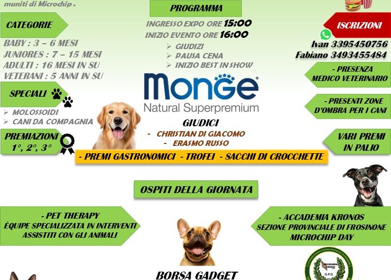 Sabato 5 luglio Alatri ospiterà la 4ª Esposizione Cinofila Amatoriale, un evento aperto a tutti gli amanti degli animali, in particolare dei cani, che potranno partecipare con esemplari di qualsiasi razza o meticci, con o senza pedigree. La manifestazione si terrà in via Vicero, in località Alatri (FR), facilmente rintracciabile anche su Google Maps come […]