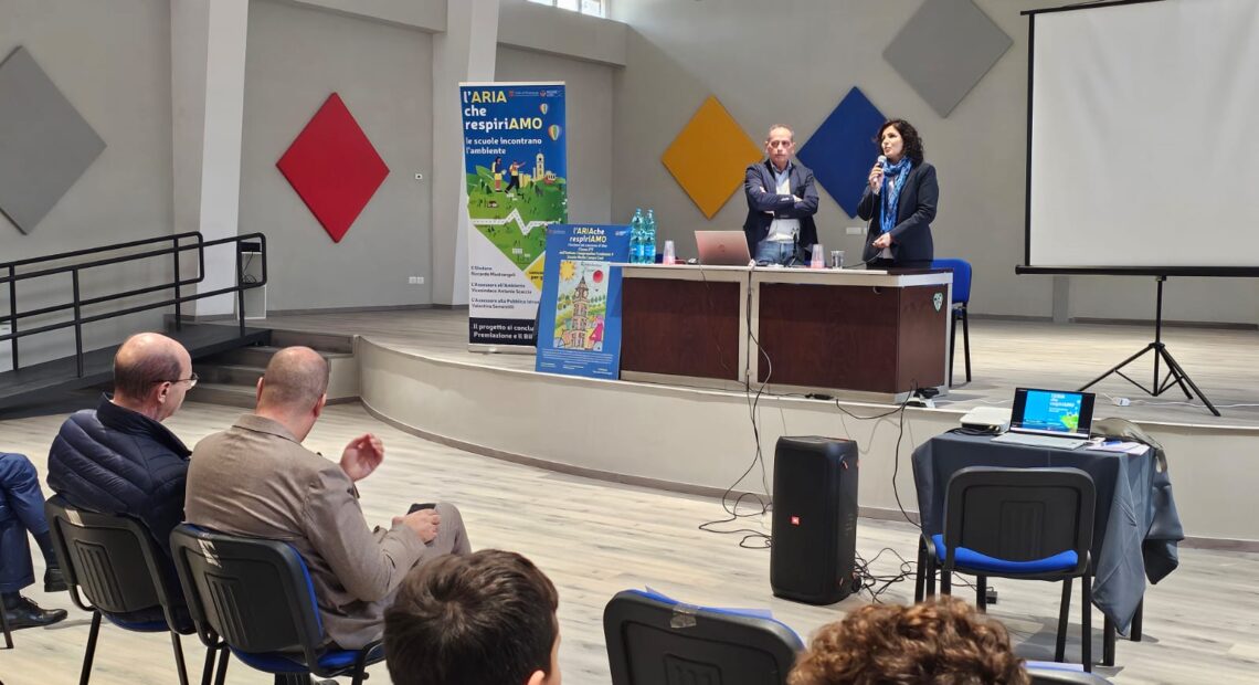 Nel rinnovato auditorium “Colapietro” di via Grappelli si è concluso, in mezzo ad una platea di giovani studenti attenti ed interessati, il progetto multidisciplinare dal titolo “L’aria che respiriamo”, realizzato dal Settore Ambiente del Comune di Frosinone con il contributo della Regione Lazio. Un’iniziativa fortemente voluta dall’Amministrazione guidata dal sindaco Riccardo Mastrangeli e dall’assessorato all’Ambiente del vicesindaco Antonio Scaccia, portata avanti in collaborazione con l’assessorato alla Pubblica Istruzione diretto da Valentina Sementilli.